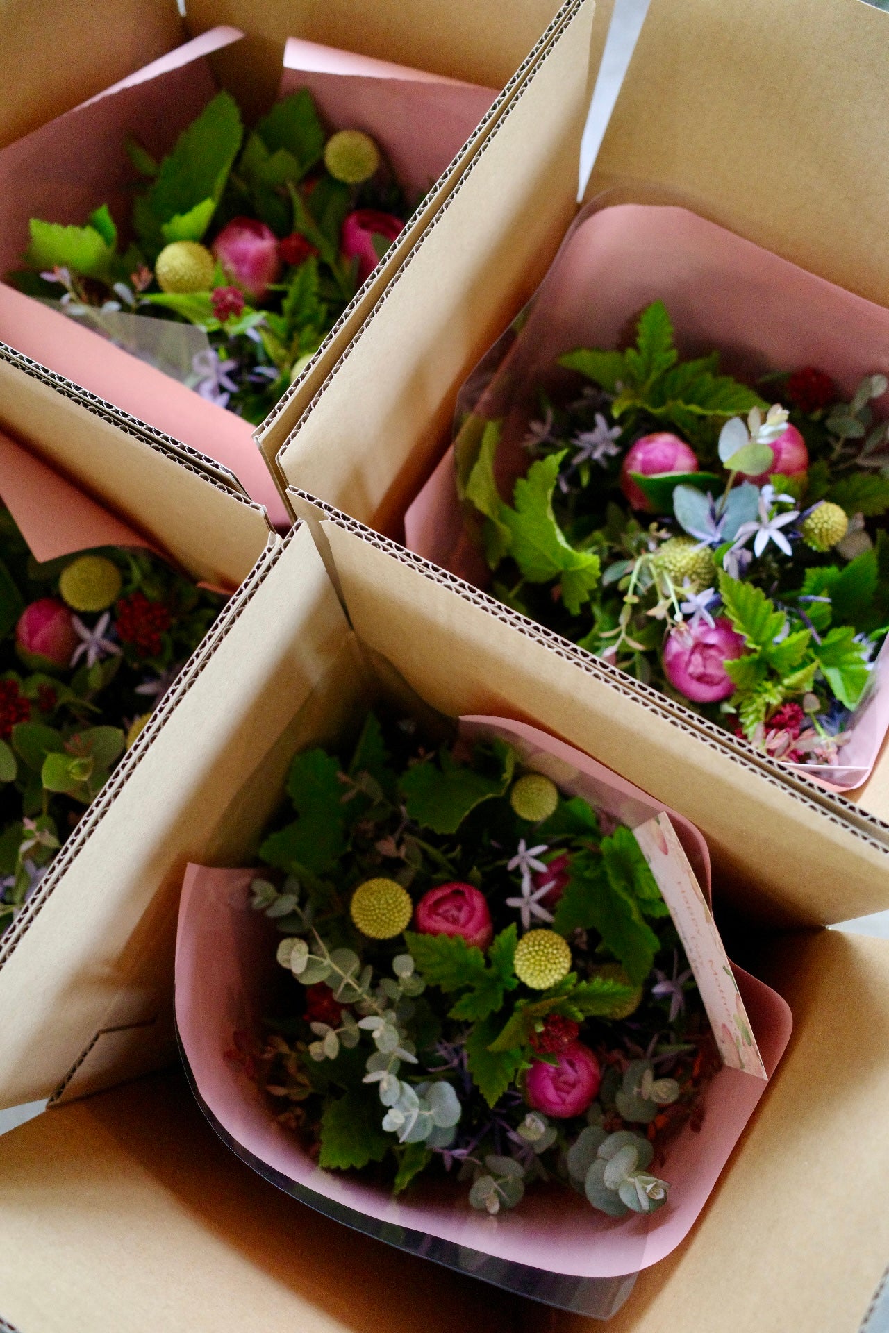 ※花束はひとつずつ専用のダンボールに丁寧にお包みして発送いたします。